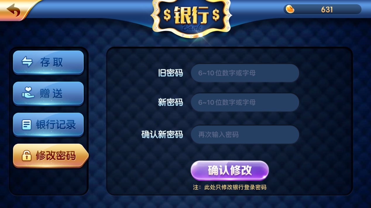 进入银行——选择“修改密码”选项——输入旧密码——输入新密码——确认修改。
